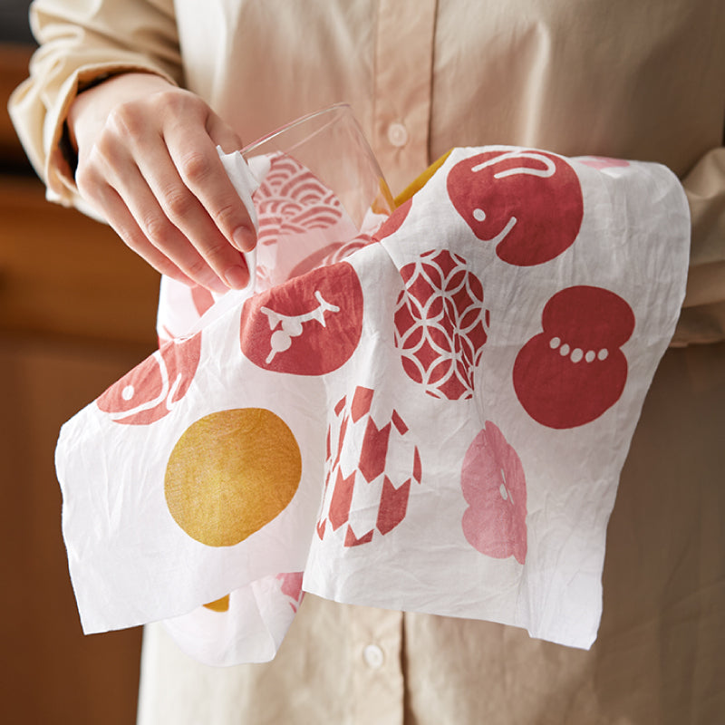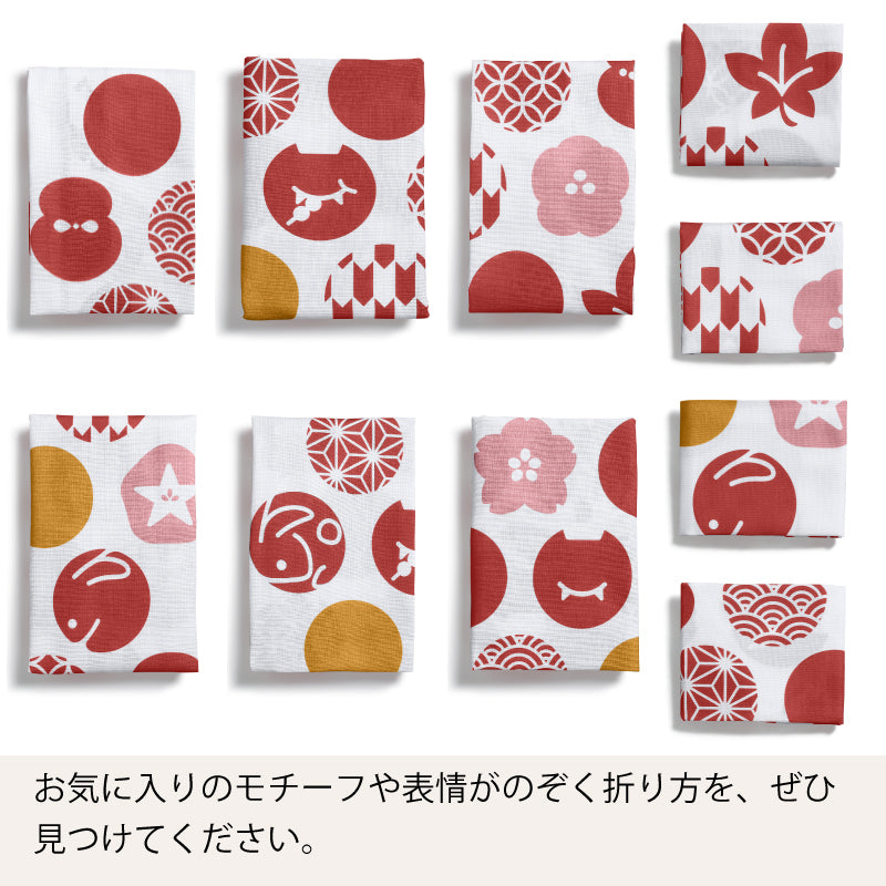 お手元でお使いいただくときには、ぜひ、お気に入りのモチーフがのぞく折り方を見つけて。