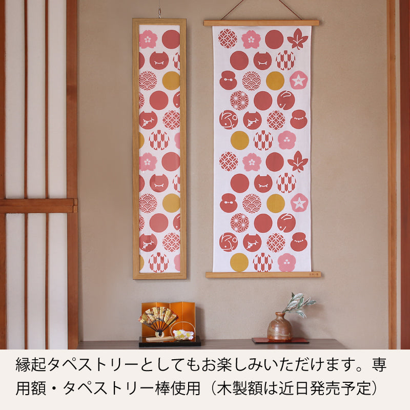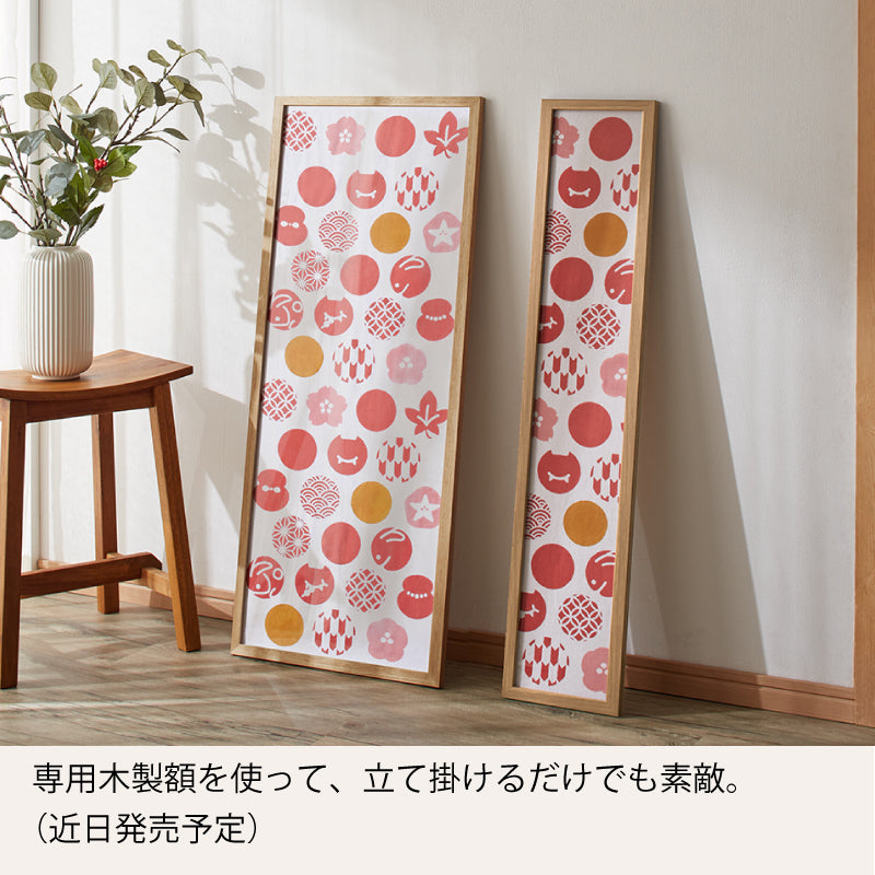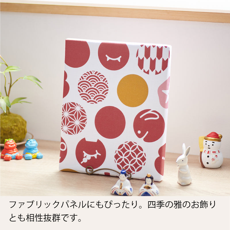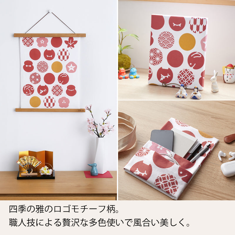 お飾りと一緒にタペストリーやファブリックパネルにして飾ったり、ポーチとして持ち歩いたり。ハーフサイズがあることで楽しみ方の幅が広がります。