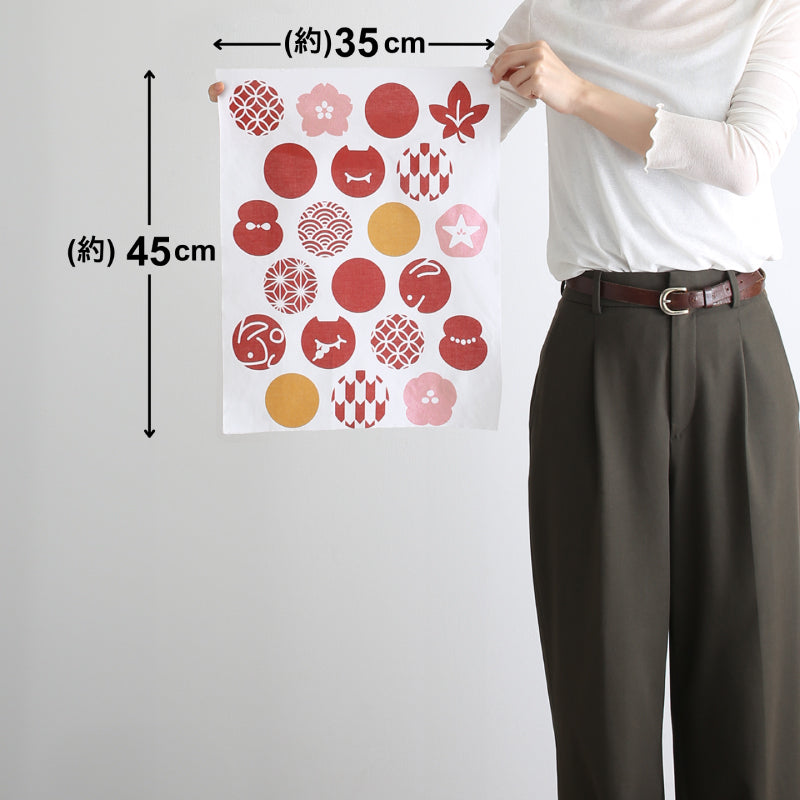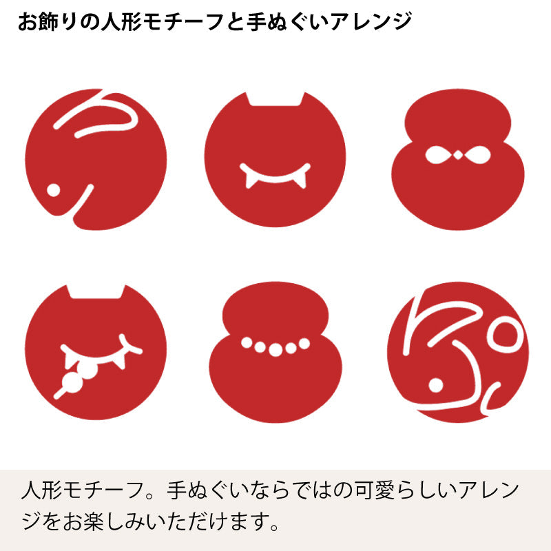 ロゴでも可愛らしいと人気の、四季の雅の人形モチーフも、手ぬぐいならではの遊び心あるアレンジをお楽しみいただけます。