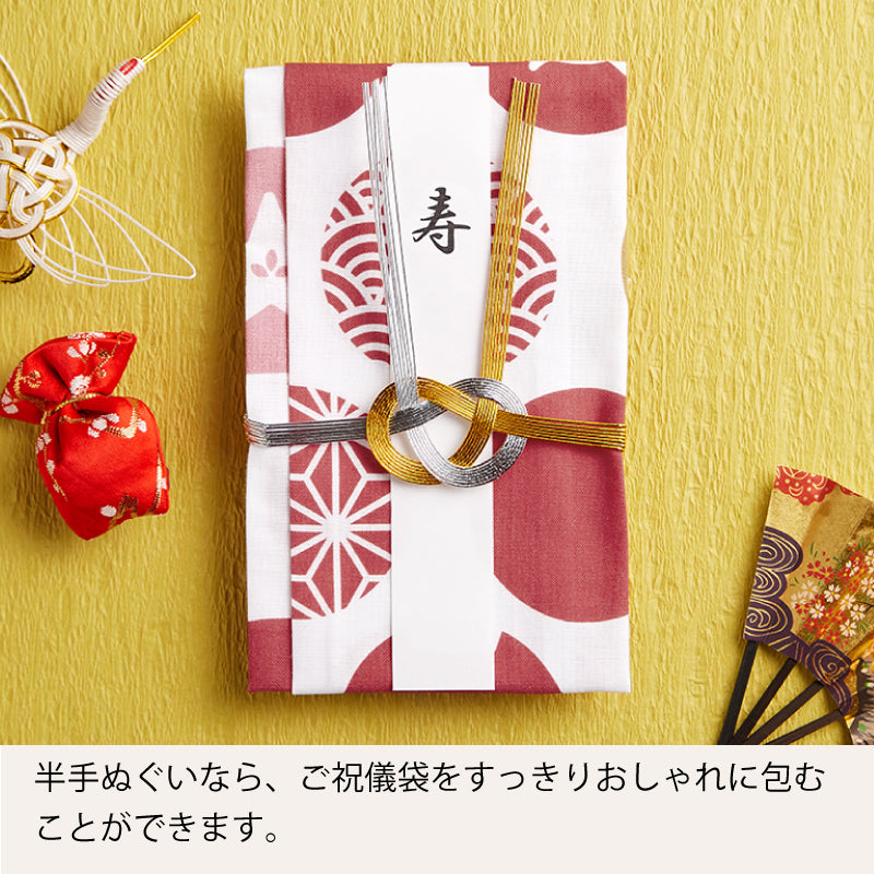✓半手ぬぐいなら、ご祝儀袋の水引がはまりやすい