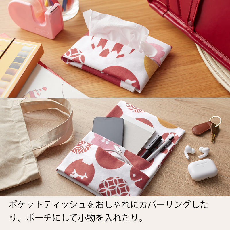 いつも持ち歩く本やポケットティッシュをおしゃれに包んだり、手ぬぐいポーチとしてカバンの中を整理したり。