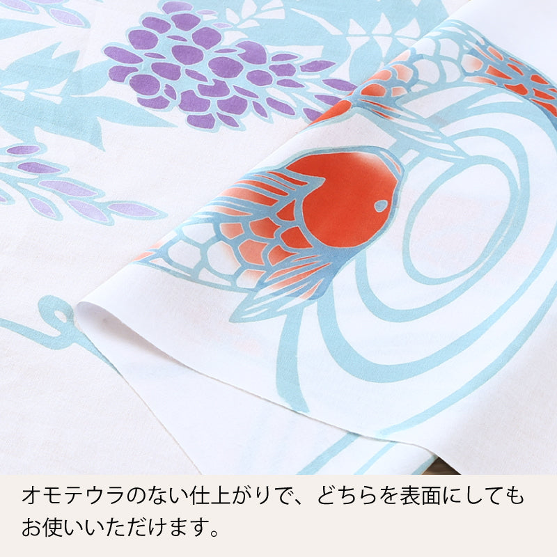 美の象徴とされる藤の花と、優美に泳ぐ美しい鯉を描いた手ぬぐいは、協和染晒工場と四季の雅が共同開発した一品です。