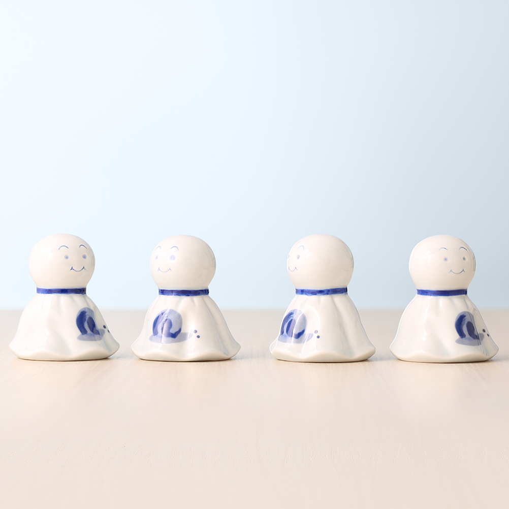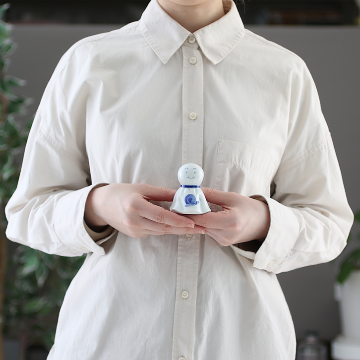 四季の雅のてるてる坊主はつやっとした磁器の置物です。テーブルや本棚、窓枠の上など身の回りの好きなところに飾って楽しめます。